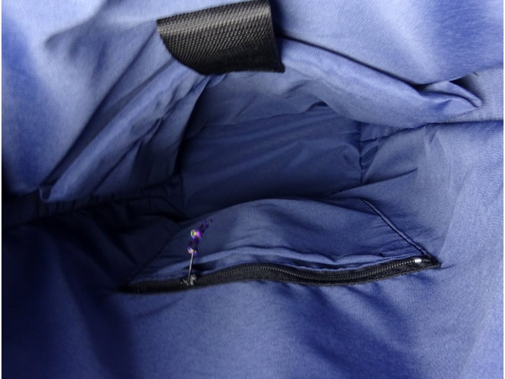 Podšívka je členěna tak, že na zádové straně má umístěnu kapsu pro notebook o max. velikosti 15". Kapsa je vypolstrována (0,5 cm tkaninou s molitanem) a zavřena popruhem se suchým zipem. Na čelní straně podšívky je malá kapsa na zip - velikost kapsy je cca 17x17 cm + 1 malá obyčejná otevřená kapsička.
