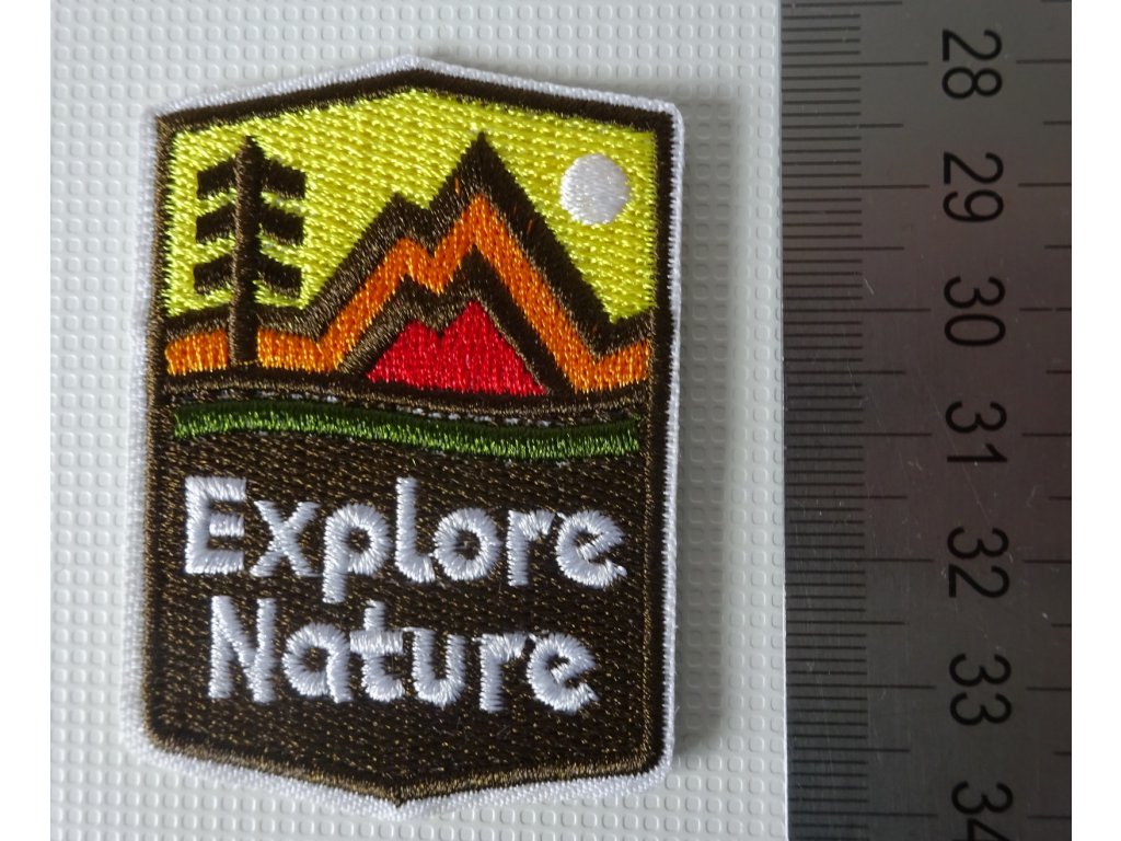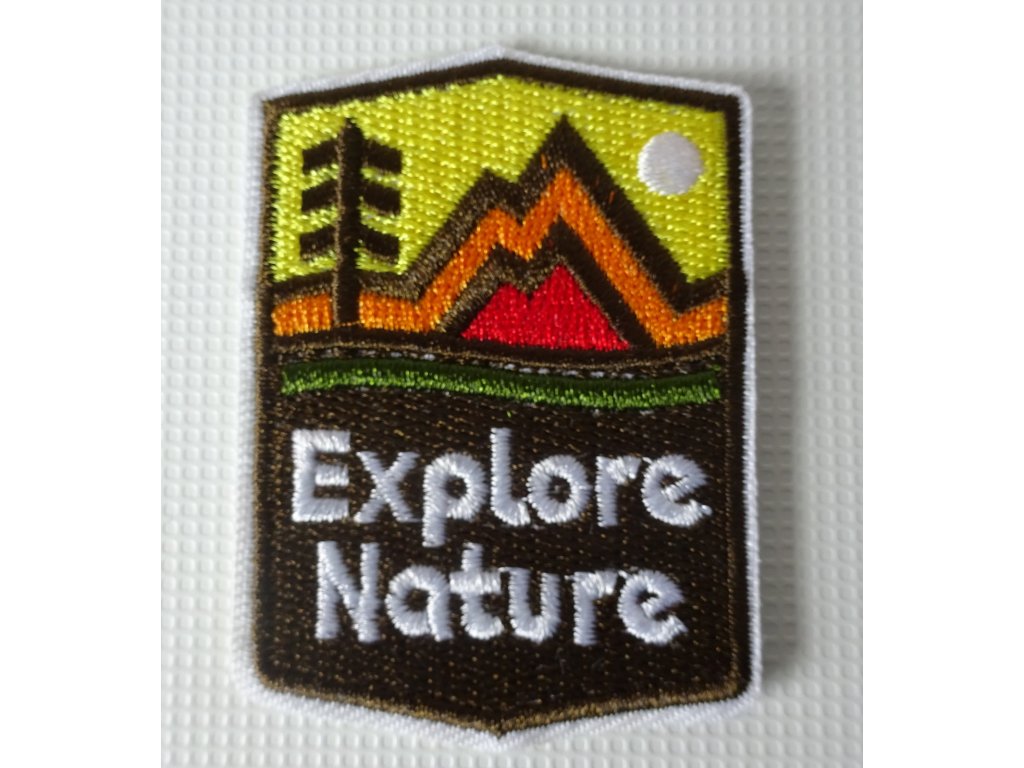 Kvalitně vypracovaná nažehlovací nášivka s motivem přírody a heslem "objevuj přírodu"