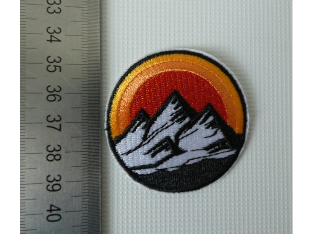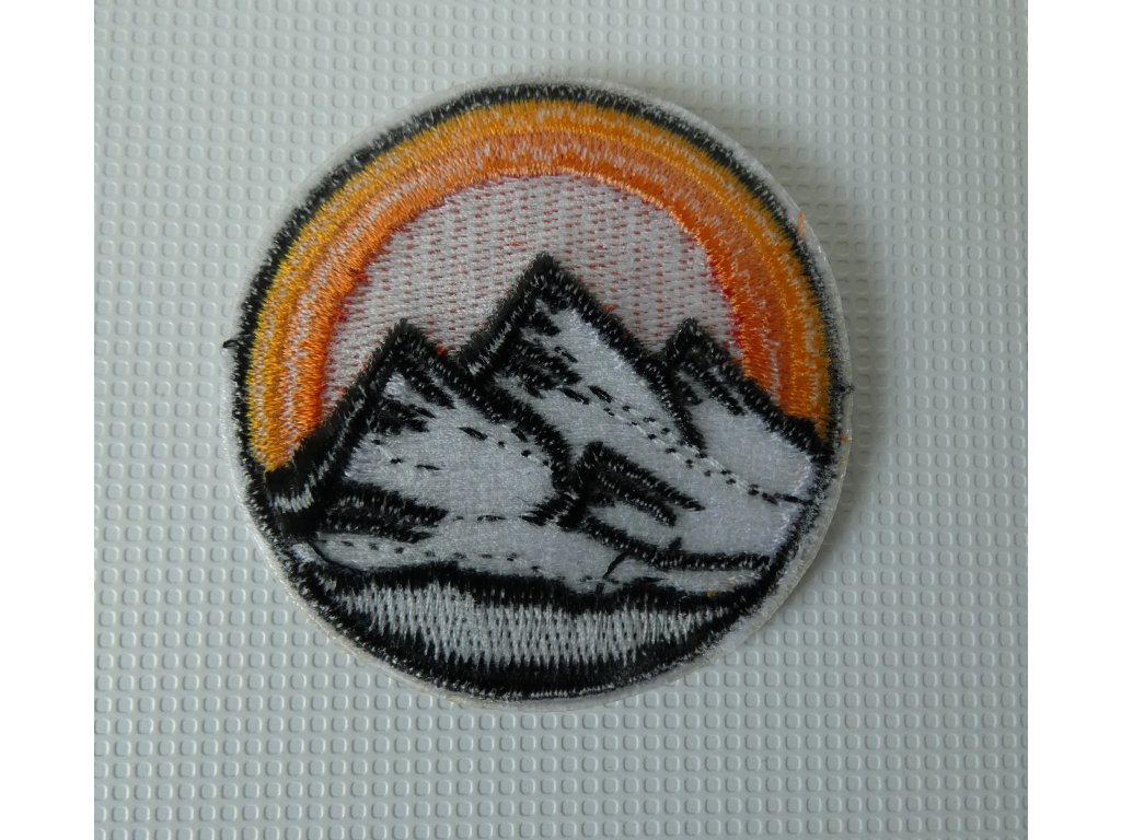 Kvalitně vypracovaná nažehlovací nášivka s motivem hor.