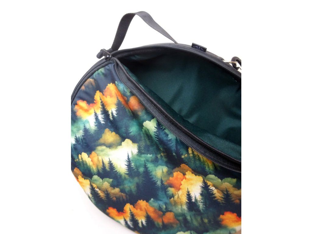 Obal je je vytvořen z polyesterových voděodolných látek - na předním panelu je motiv lesa. Zbytek obalu je z černé batohoviny. Uvnitř je tmavě zelená podšívka.