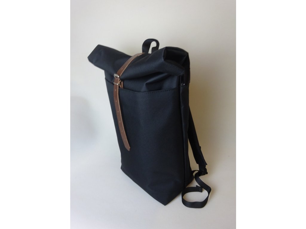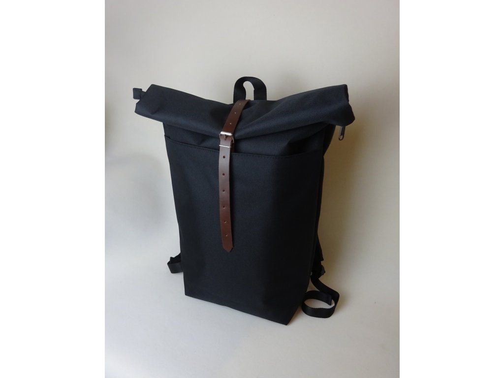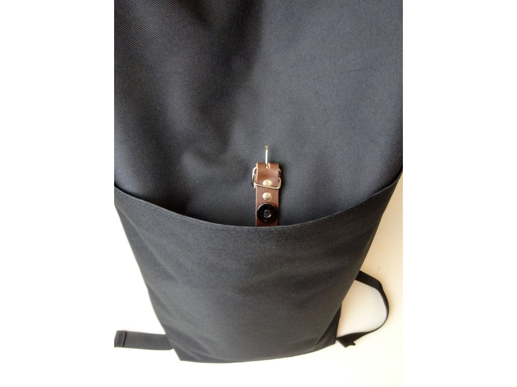 - k zajištění hlavní komory batohu je navíc použit tmavě hnědý kožený pásek s klasickou průvlečnou sponou ve stříbrné barvě
