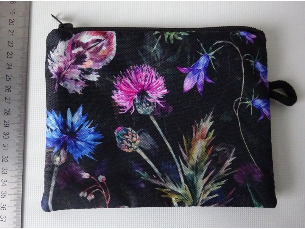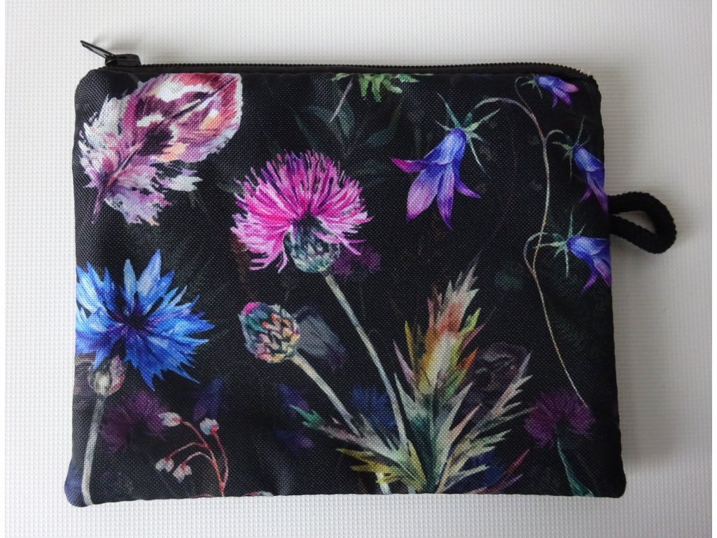 voděodolná a pevná kapsička s motivem chrp, jetele a dalších lučních květů