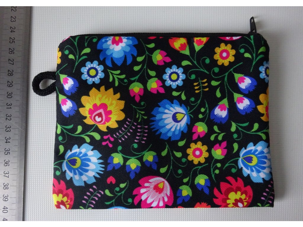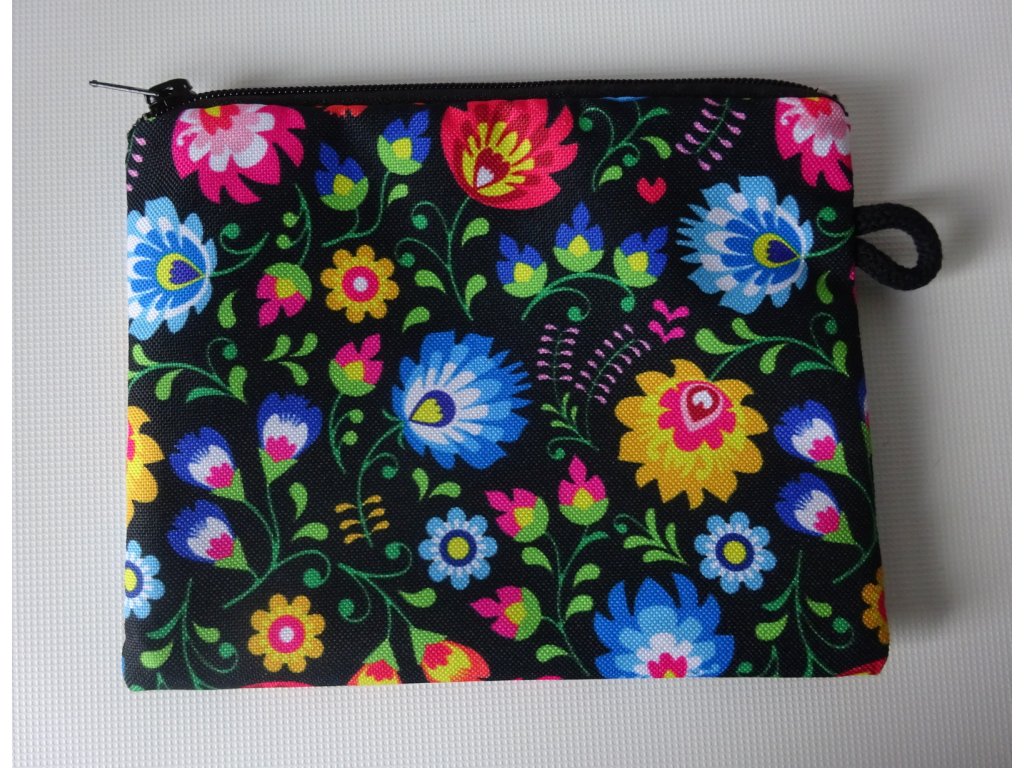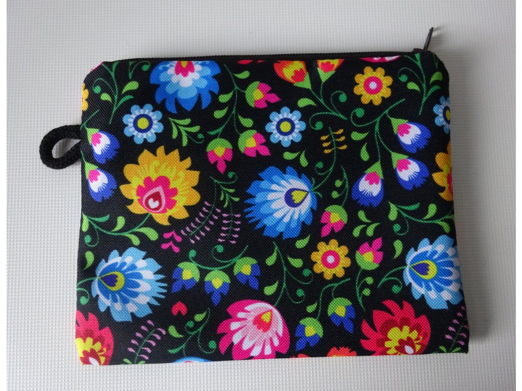 voděodolná a pevná kapsička s motivem folklorních květů