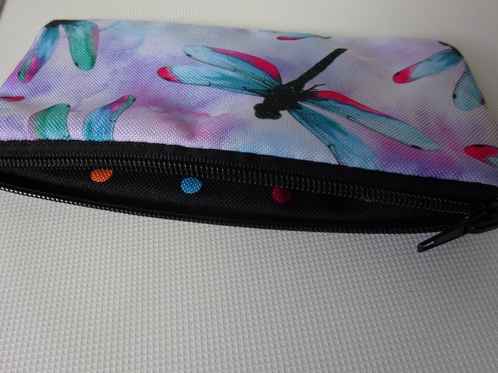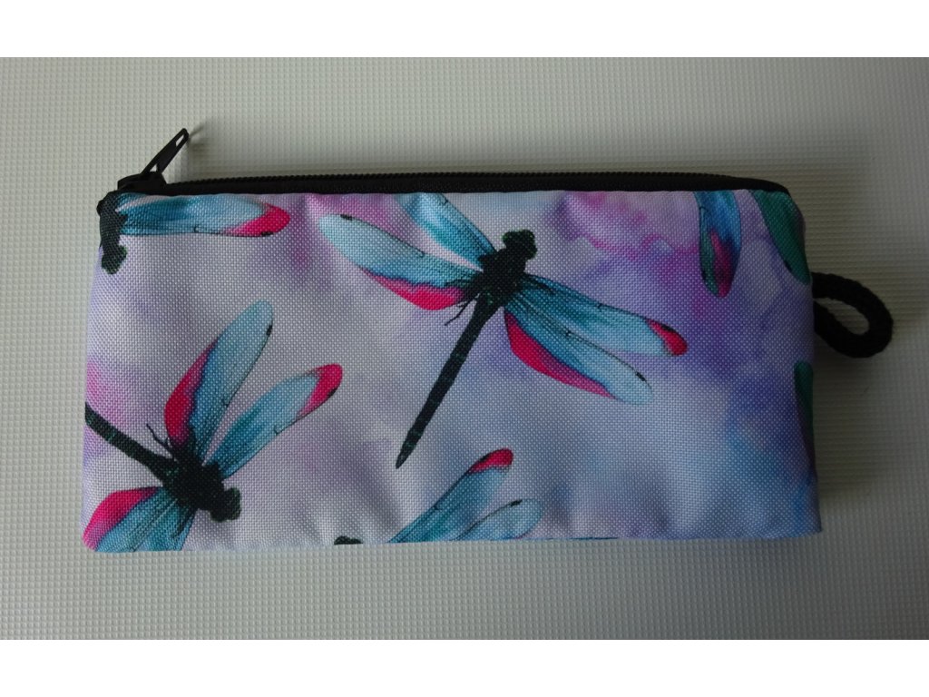 voděodolná a pevná kapsička s motivem vážek v modrých tónech