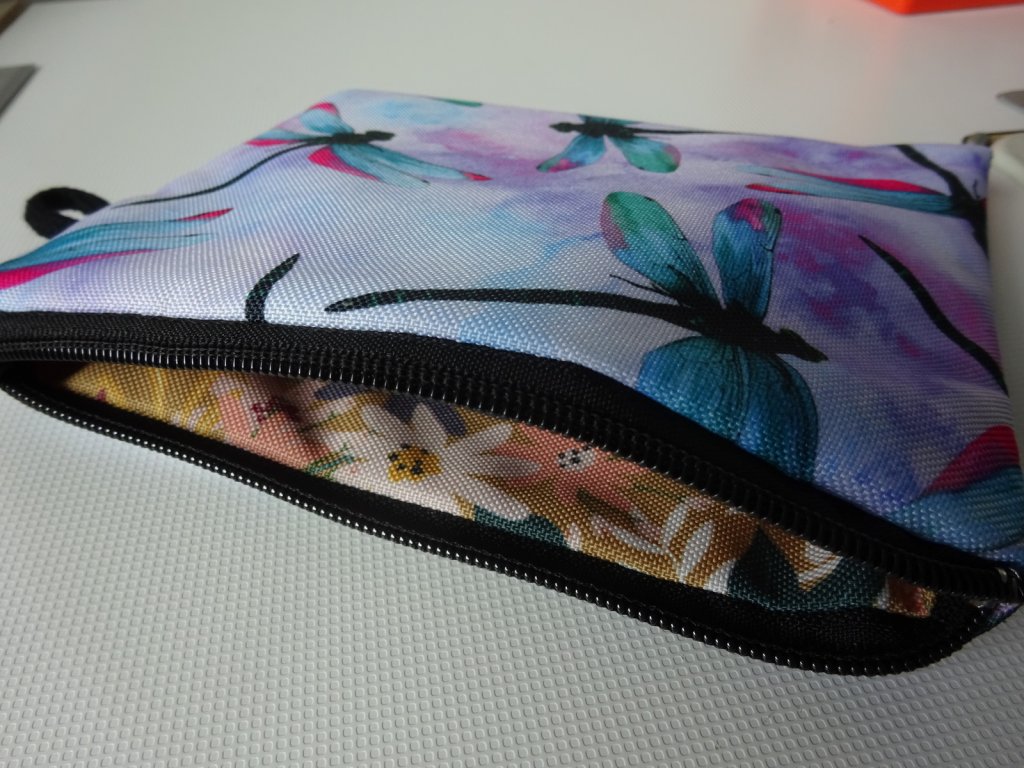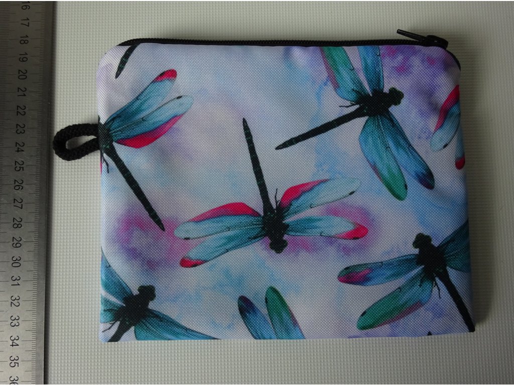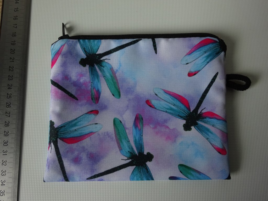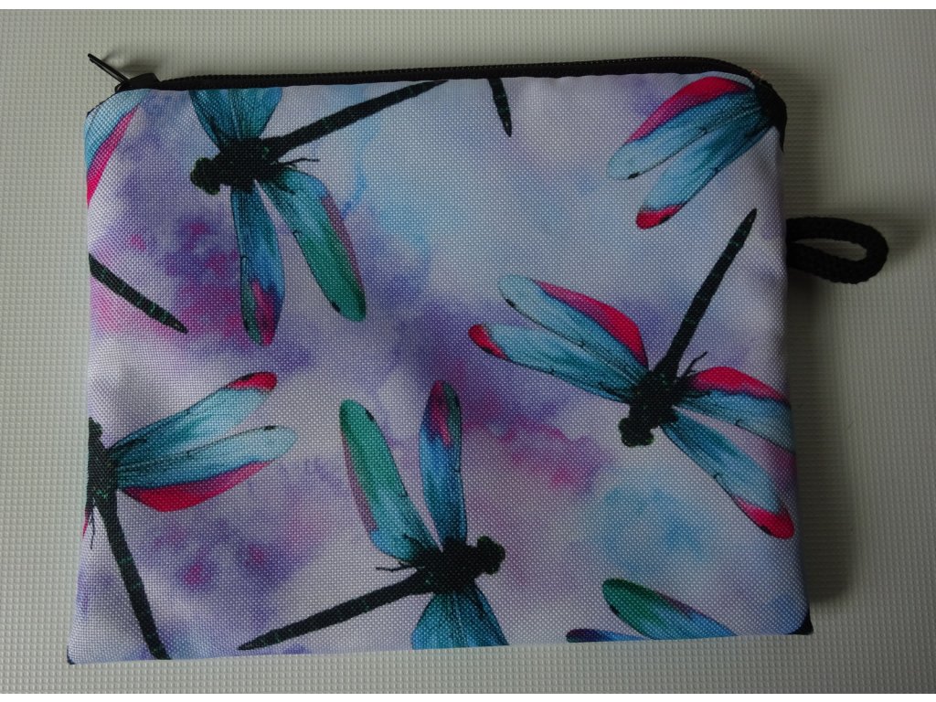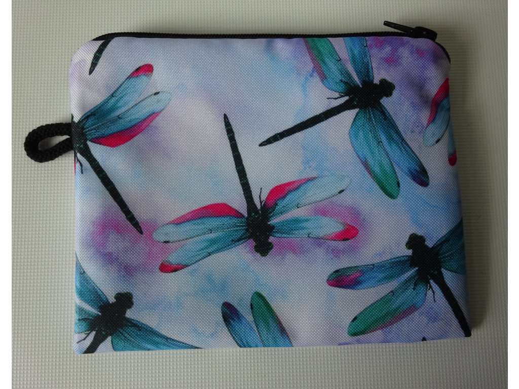 voděodolná a pevná kapsička s motivem vážek v modrých odstínech