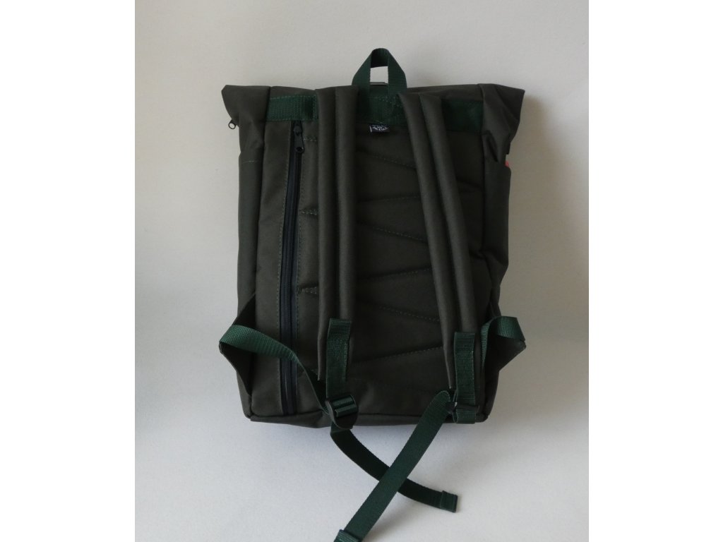 Batoh je vyroben z voděodolné a pevné batohoviny - Kortexinu v ČERNOZELENÉ barvě, popruhy jsou tmavě zelené